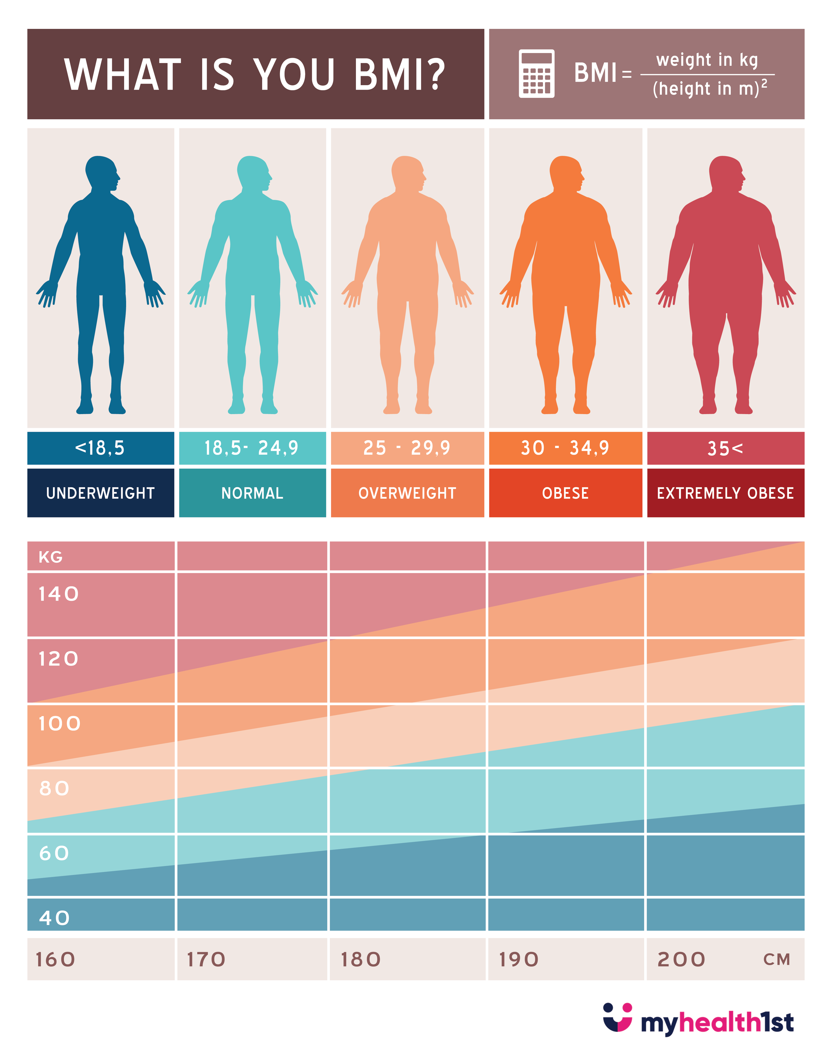 The calculation divides the person’s weight in kilograms by their height (in m²) to determine the overall range in which they fit, with the higher someone’s BMI the more at risk they are of health issues or complications due to weight.