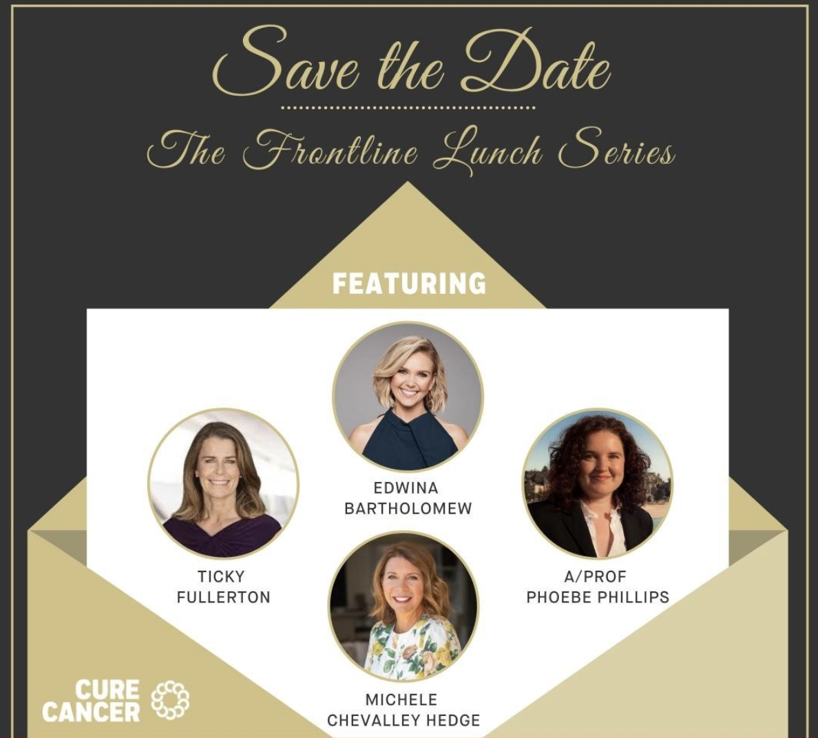 Purchase tickets for the Frontline Lunch on October 23 to hear from a panel of inspirational women including Sunrise’s Edwina Bartholomew, journalist Ticky Fullerton, nutritionist Michele Chevalley-Hedge and leading cancer expert A/Prof Phoebe Phillips, discussing women in research, advocacy and policy nutrition, wellness and cancer prevention.