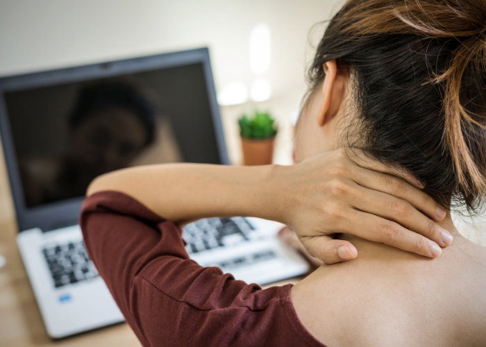 Having insufficient back support in a chair, a chair or desk being at an inappropriate height, monitors being at the wrong height and the like can all cause the neck to be held in an awkward position for long periods of time, putting stress on the muscles, tendons and ligaments of the neck.