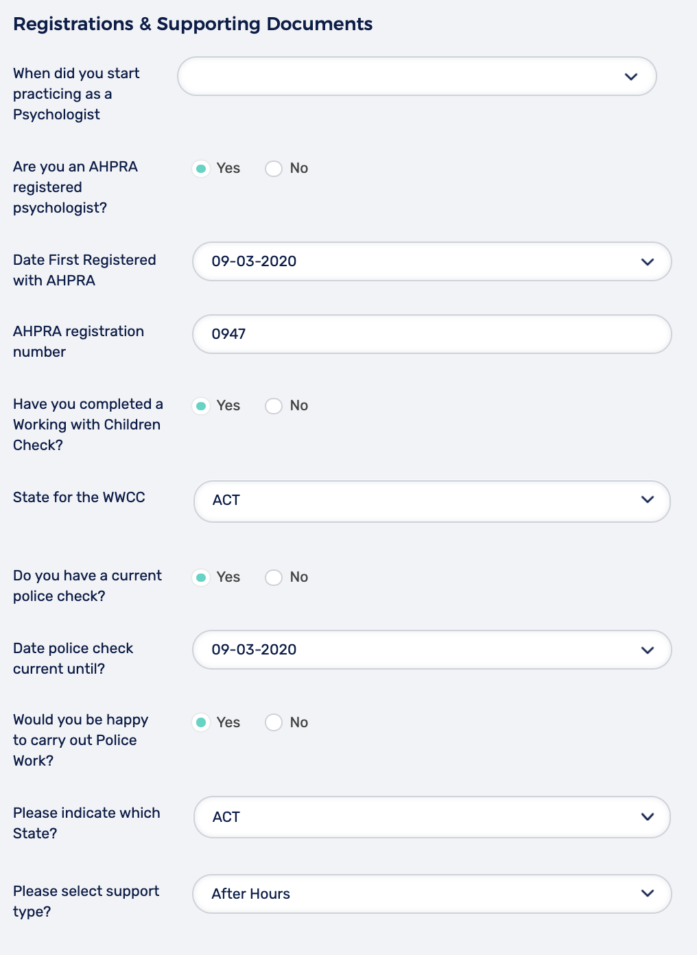 Registrations & Supporting Documents Having all your registrations up to date and support documents available can open a practitioner to police, EAP and other referrals. In this section, you should answer the following questions: