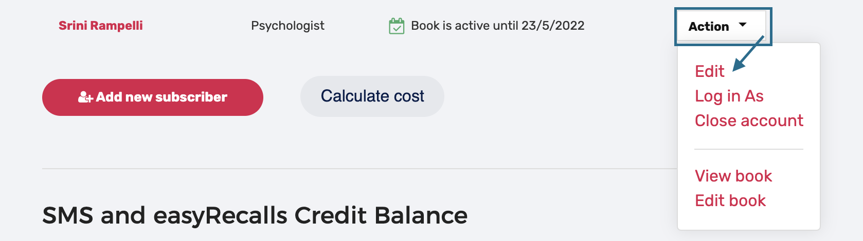Click on the button and choose “Edit” from the drop-down menu. This will take you to the Edit subscriber page. Here you can edit a number of different parameters.